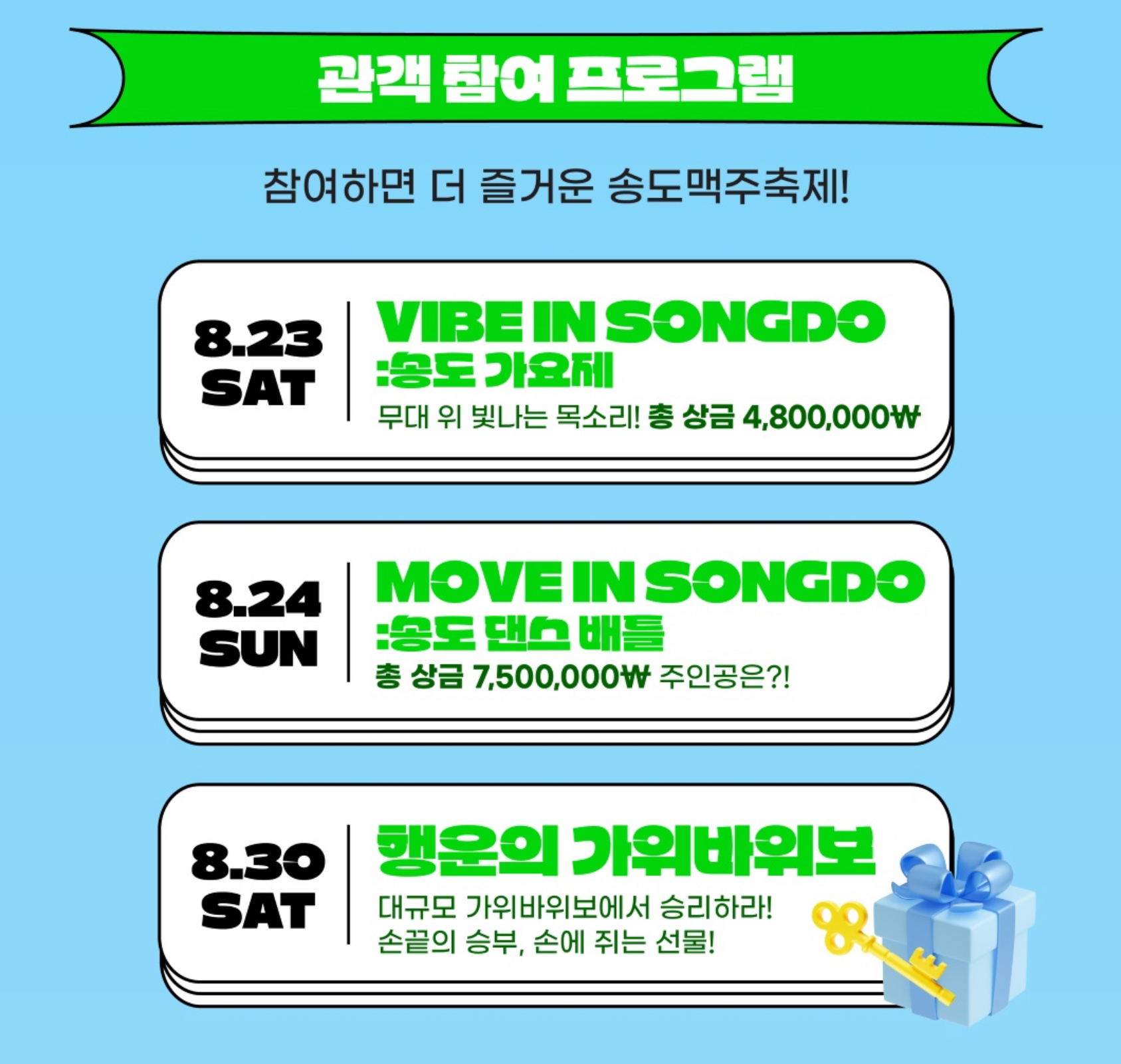 2025 ์†ก๋„๋งฅ์ฃผ์ถ•์ œ ์ผ์ •, ์žฅ์†Œ, ํ”„๋กœ๊ทธ๋žจ, ๊ณต์—ฐ ๋ผ์ธ์—…, ๊ตํ†ต ์ •๋ณด ์ด์ •๋ฆฌ!